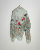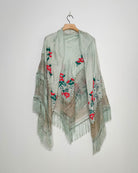 1 of 1 French Knot Floral Silk Shawl with Fringe - Pale Aqua/Multi