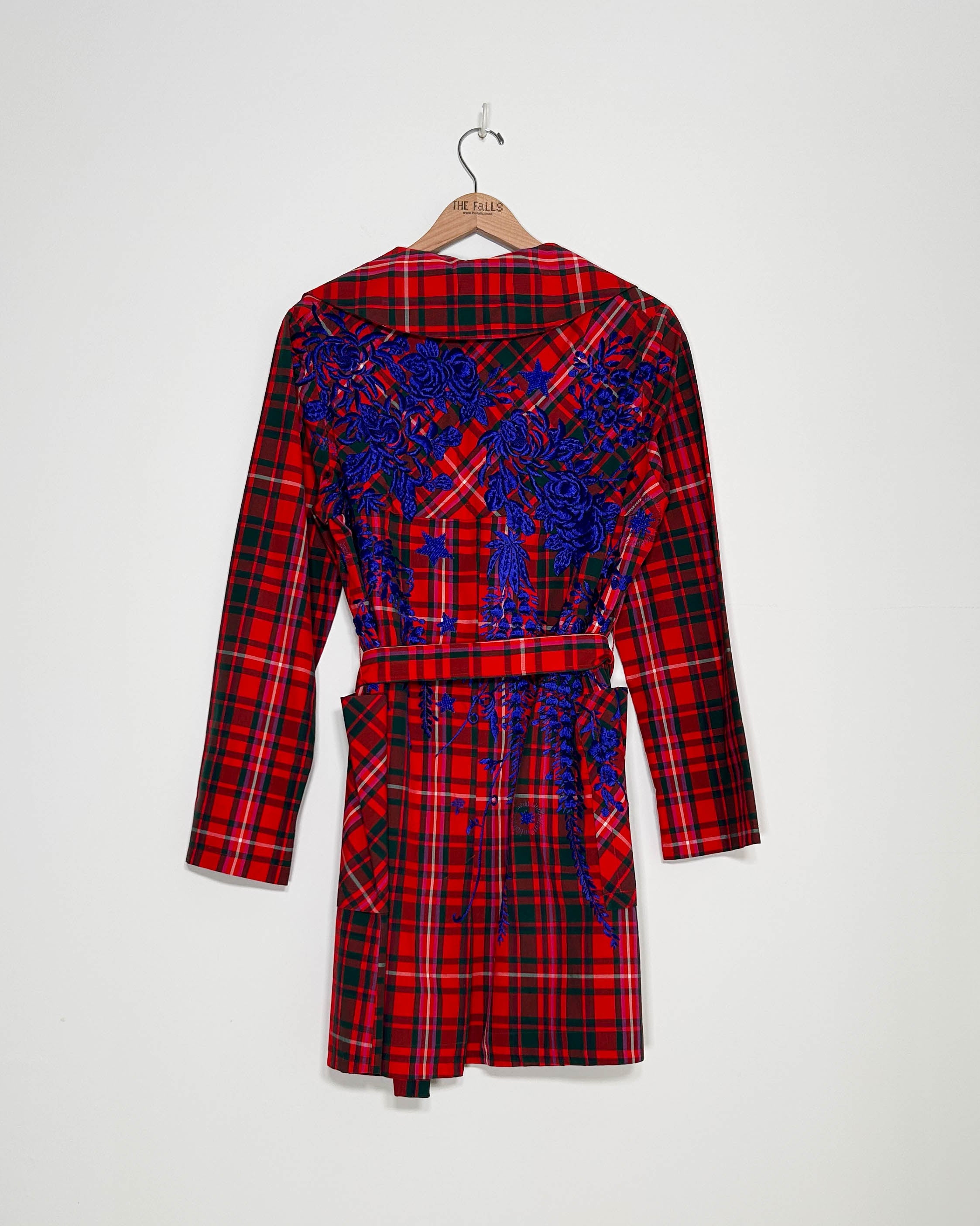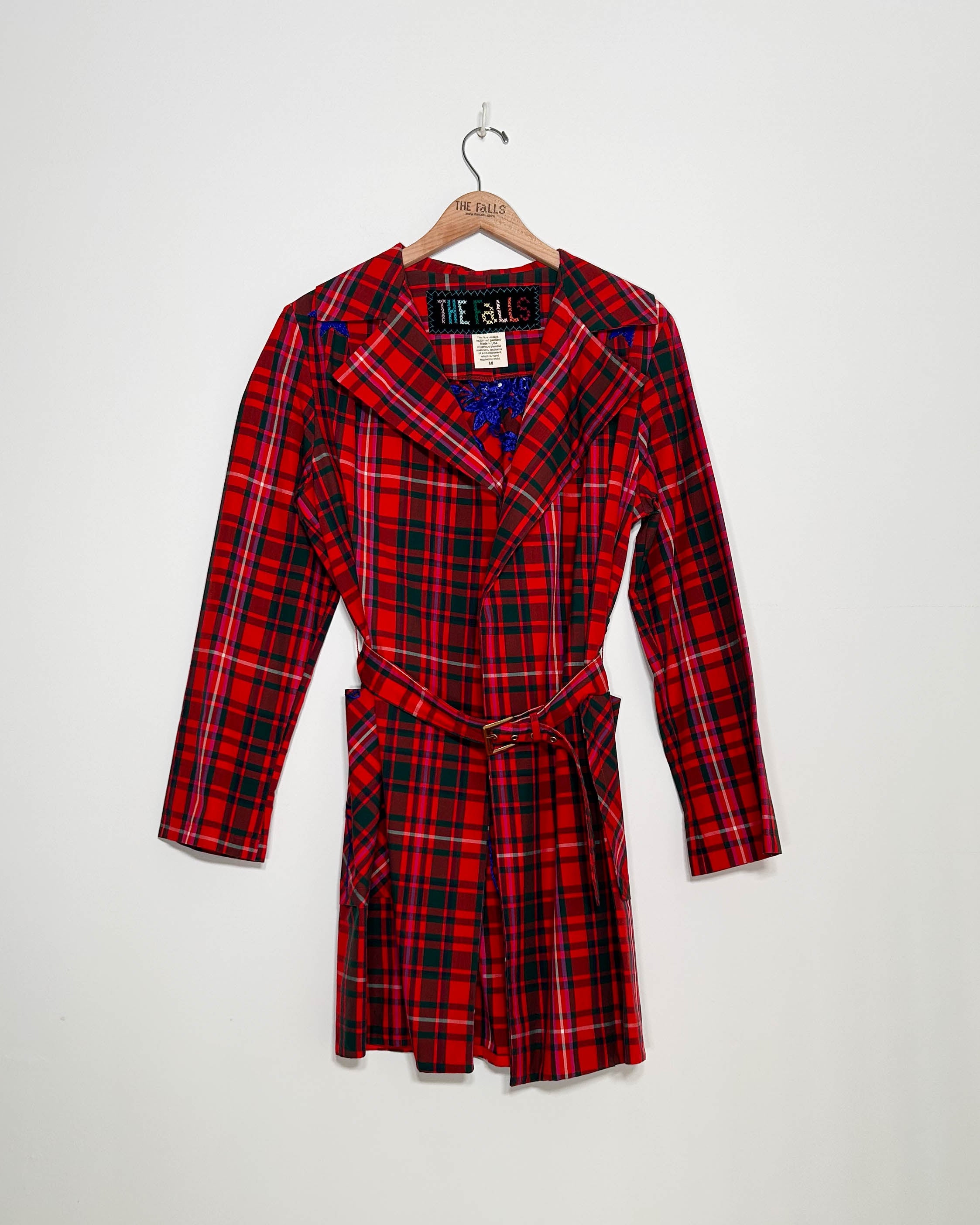 "Wisteria" Vintage Plaid Trench - Red/Blue