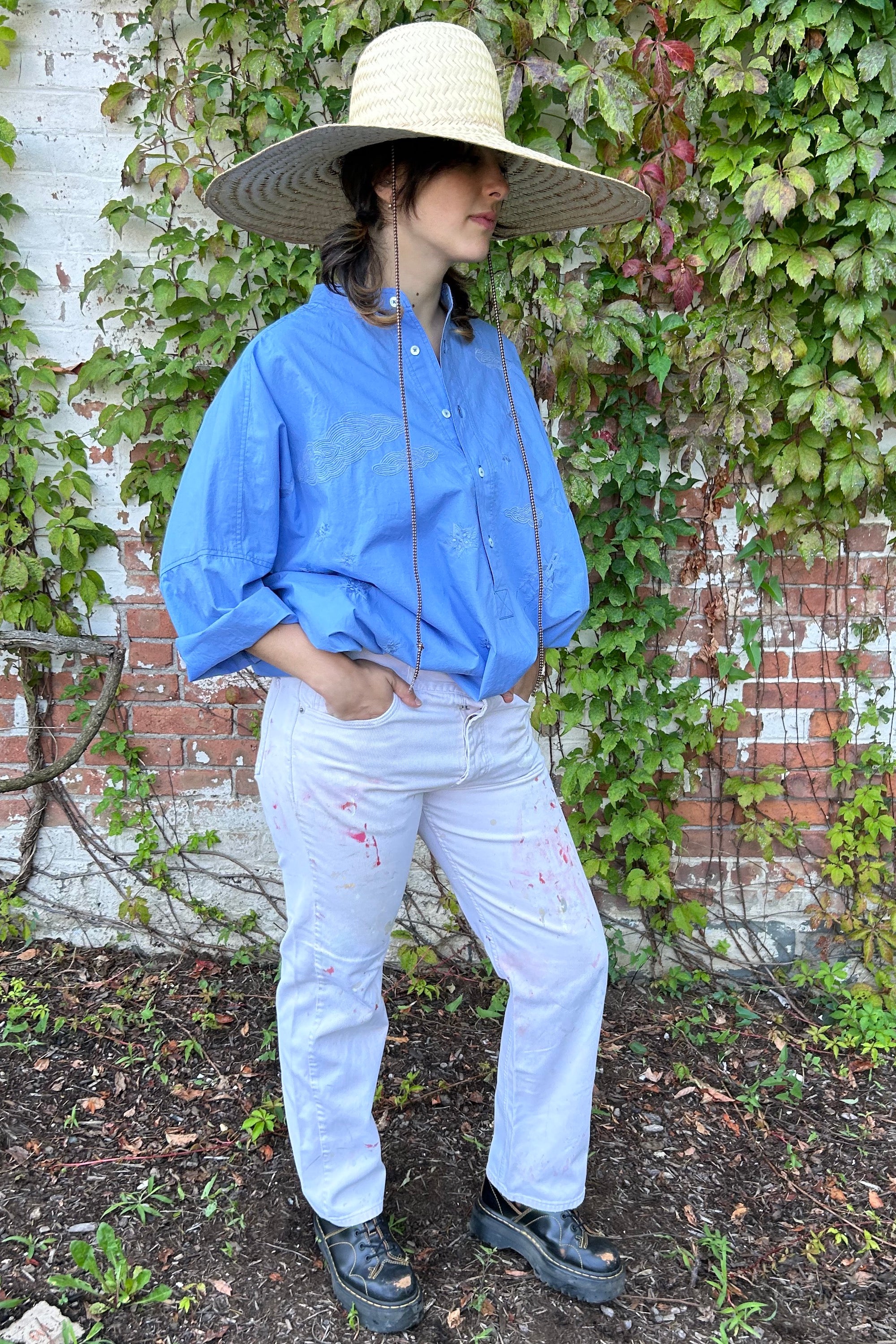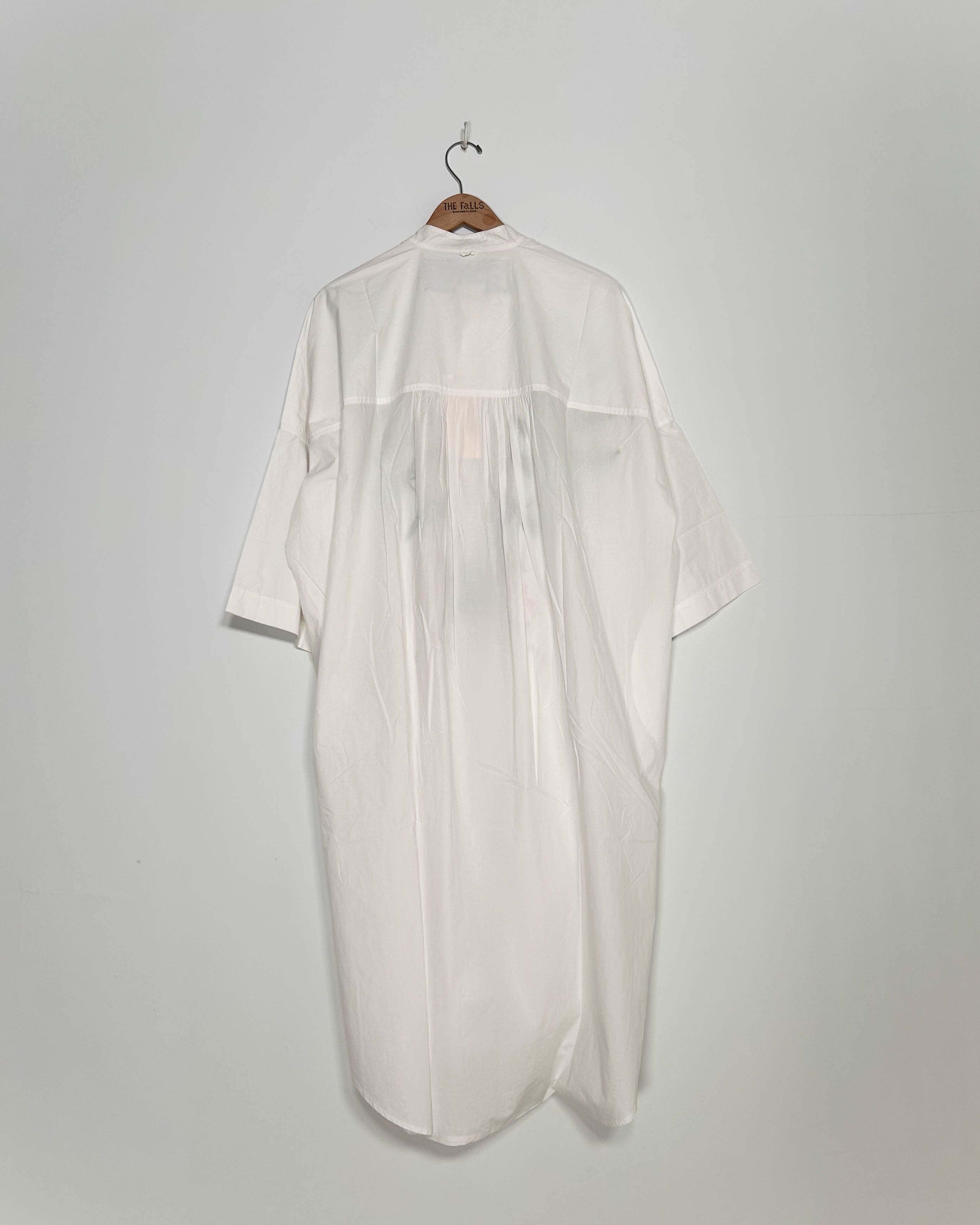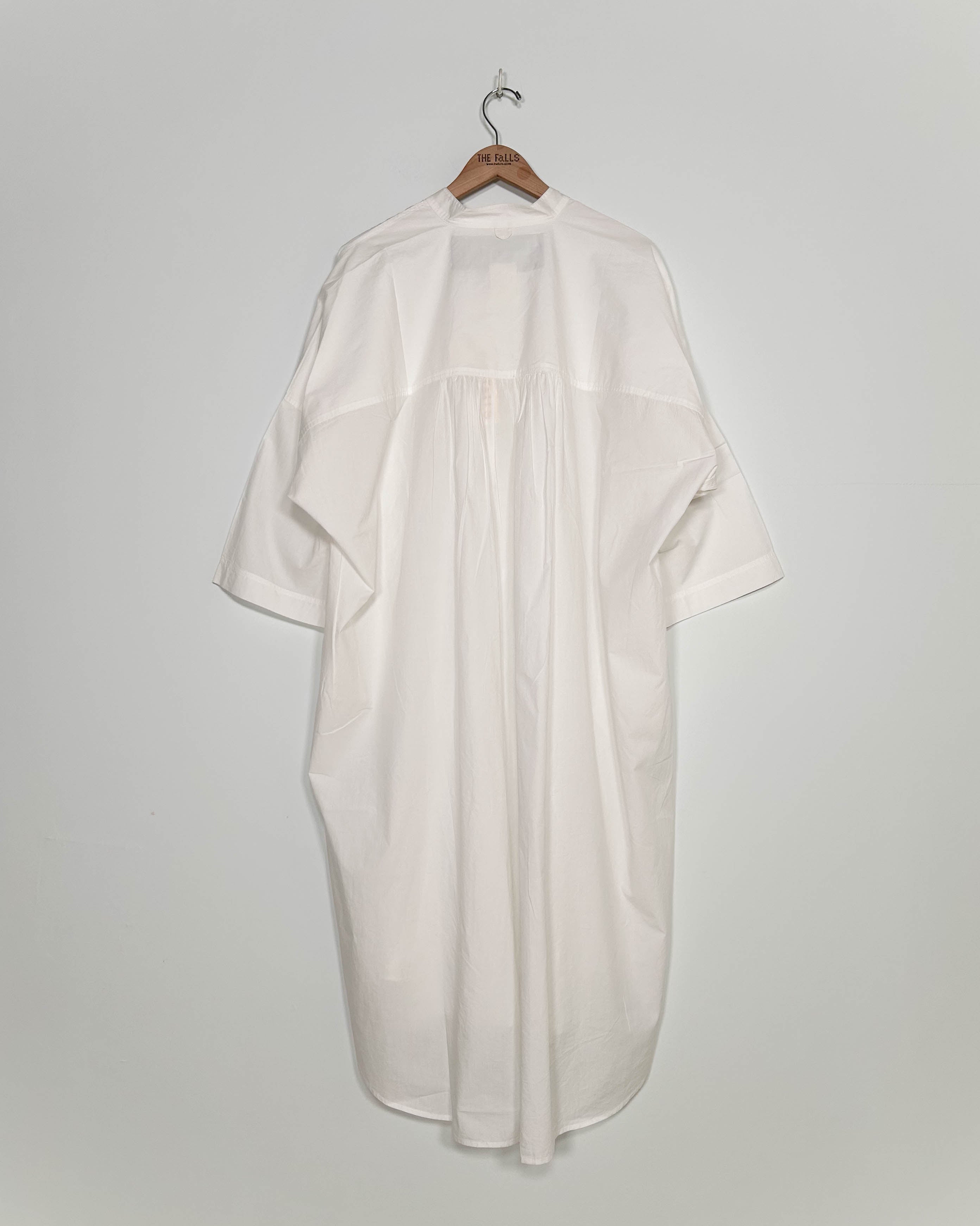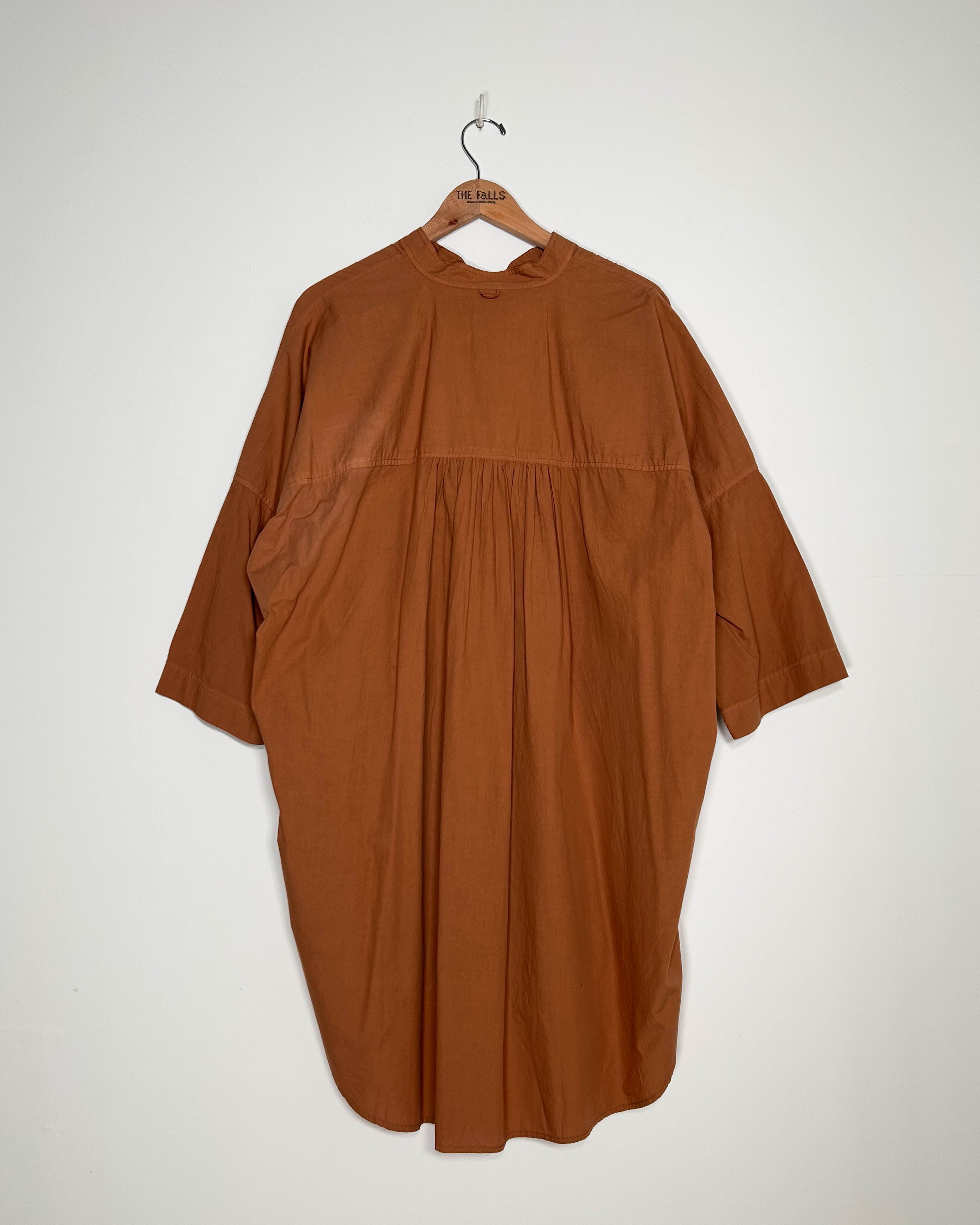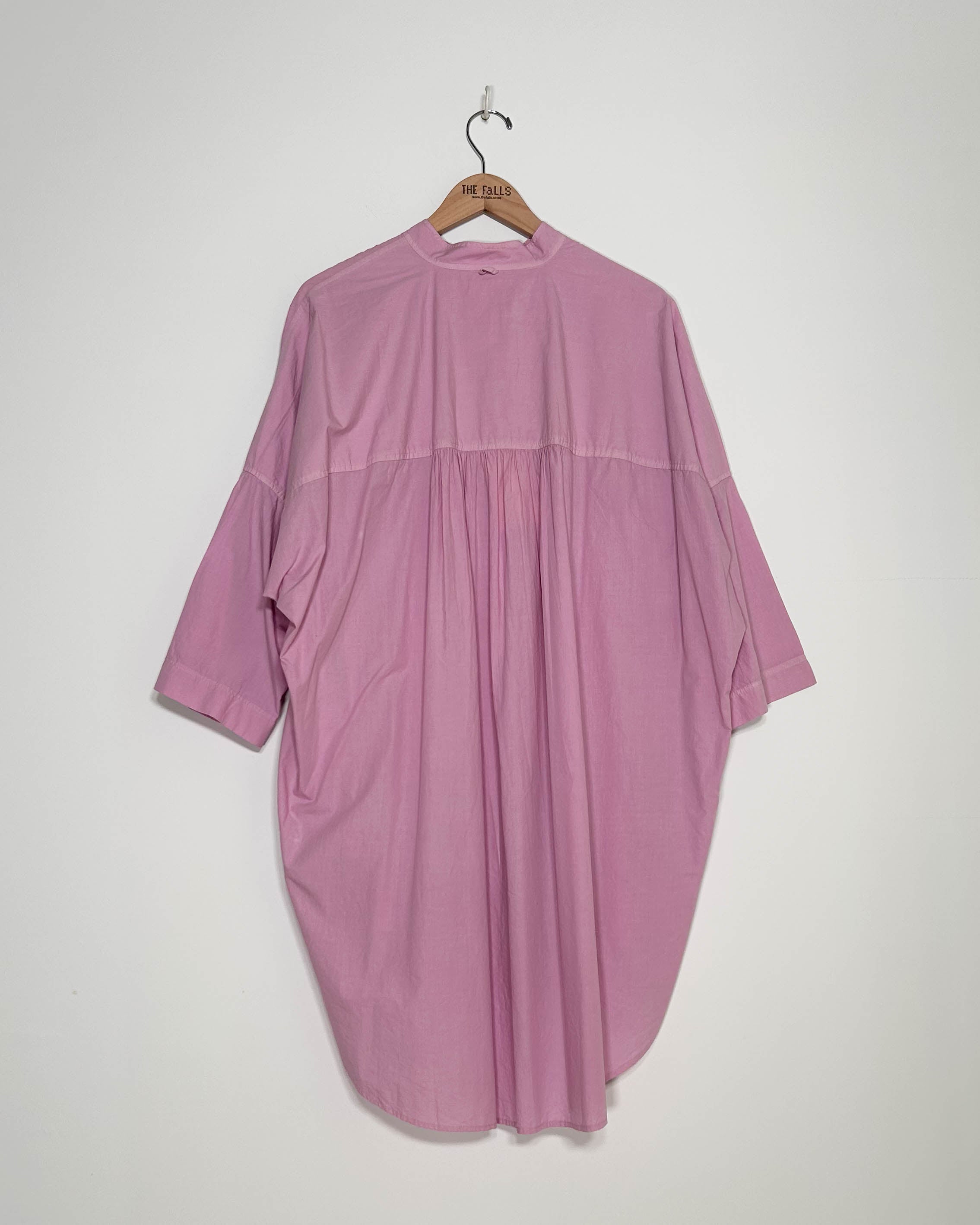 Inspired by a cherished Victorian men’s nightshirt, our kaftans reimagine that simple, elegant silhouette as an intentionally oversized popover. The fit remains consistent season after season, while the embroidered motifs evolve —stars, moons, flowers, and delicate garlands with The Falls' motifs such as rockets, invaders and emojis that feel both authentic and timeless. Crafted from soft organic cotton poplin, it’s one of the few garments in our collection made entirely from virgin materials. Each piece is garment-dyed with natural vegetable dyes, a slow botanical process that creates subtle, organic tone variations — no two shirts ever emerge exactly alike.