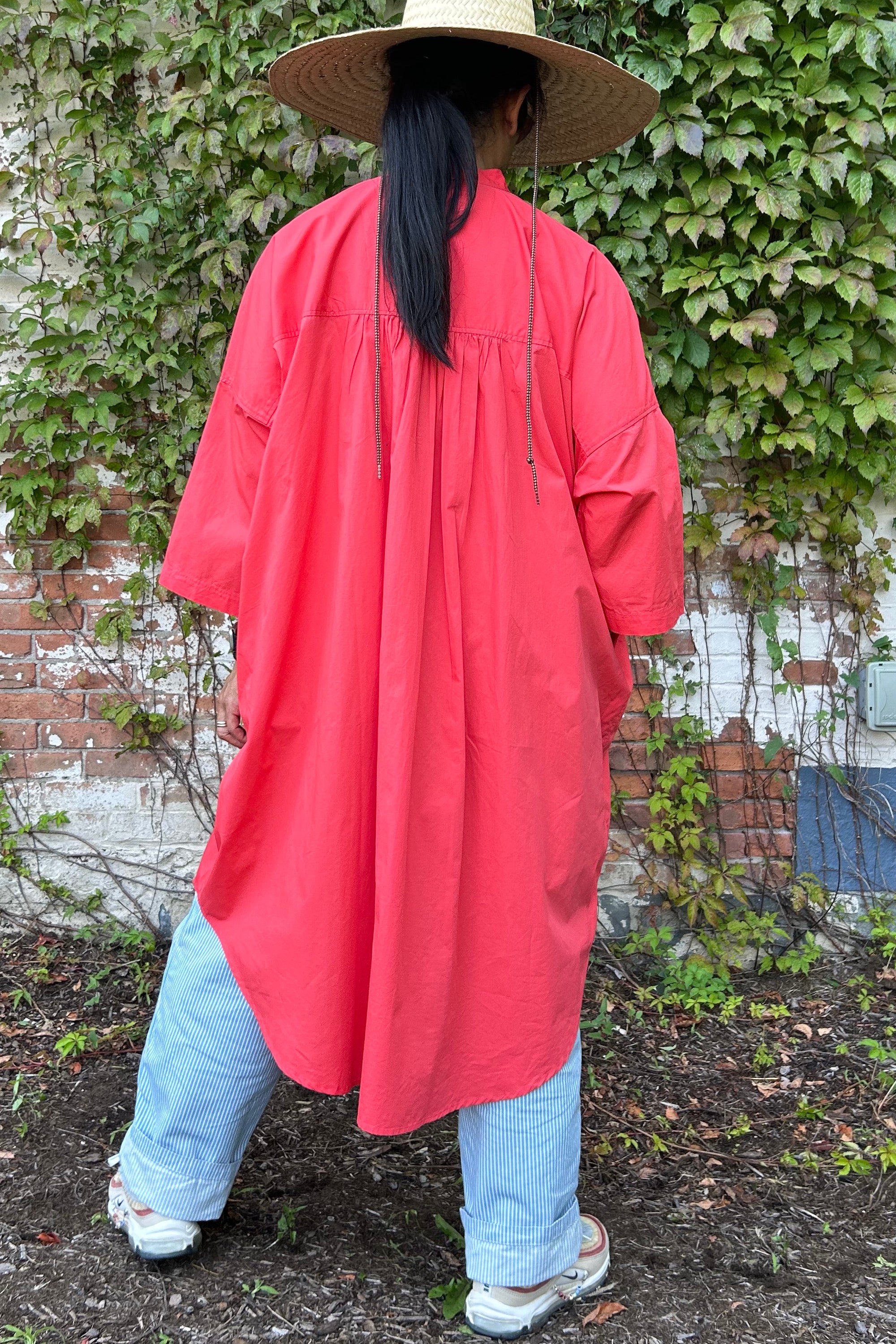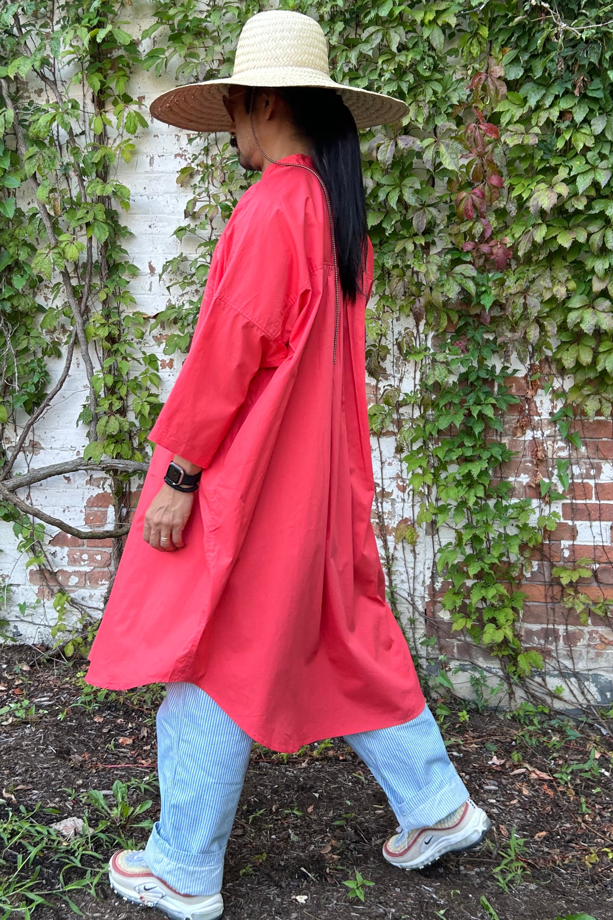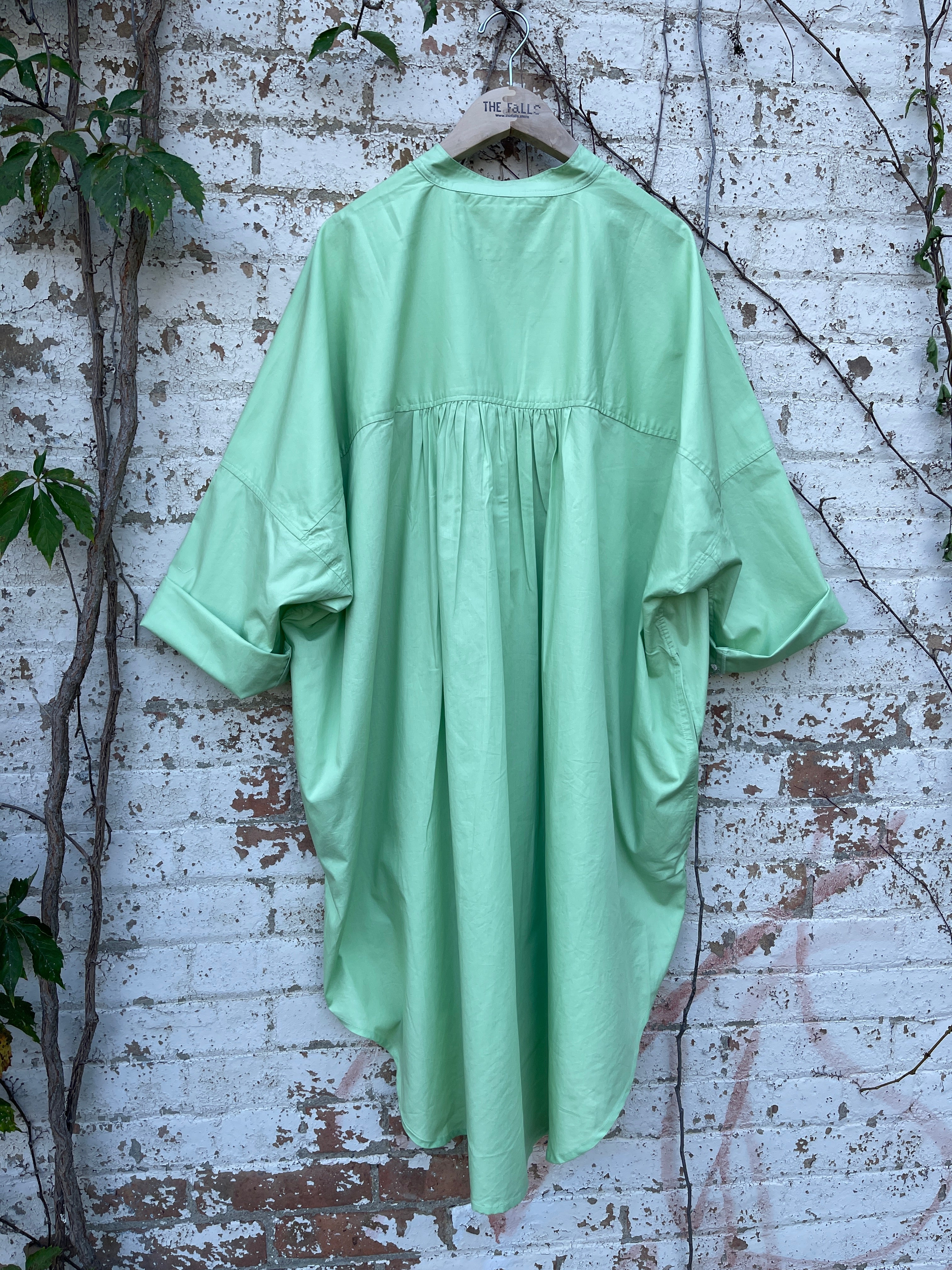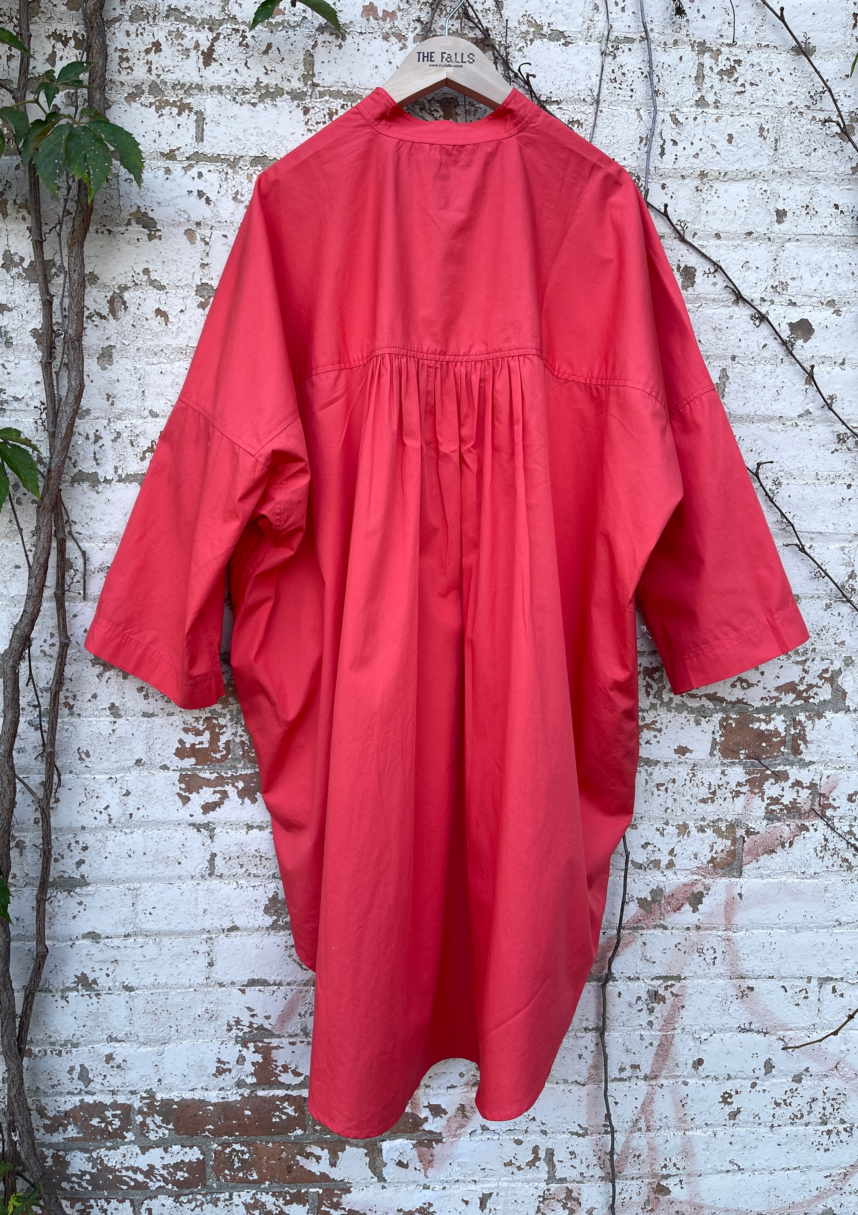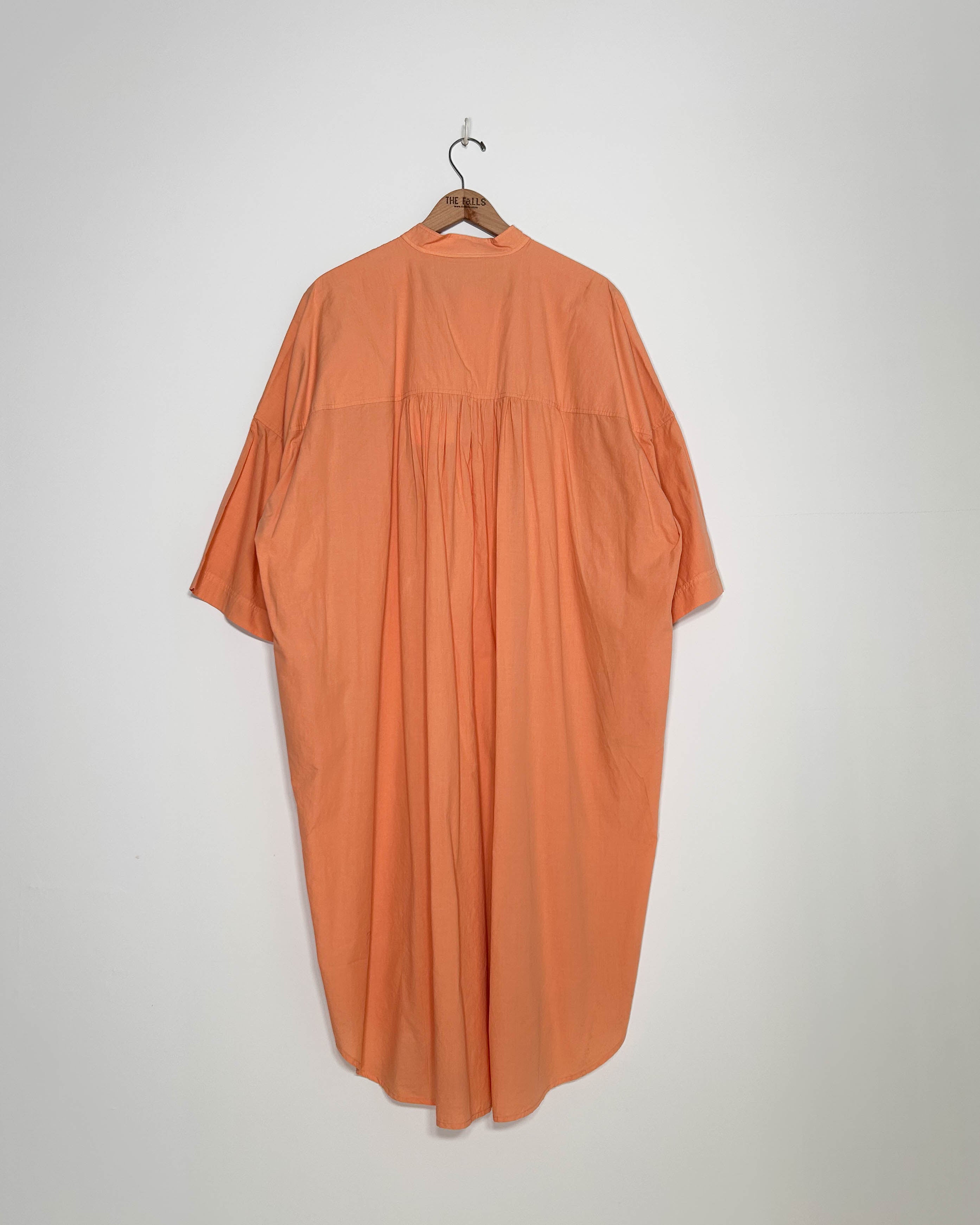 Inspired by a cherished Victorian men’s nightshirt, our kaftans reimagine that simple, elegant silhouette as an intentionally oversized popover. The fit remains consistent season after season, while the embroidered motifs evolve —stars, moons, flowers, and delicate garlands with The Falls' motifs such as rockets, invaders and emojis that feel both authentic and timeless. Crafted from soft organic cotton poplin, it’s one of the few garments in our collection made entirely from virgin materials. Each piece is garment-dyed with natural vegetable dyes, a slow botanical process that creates subtle, organic tone variations — no two shirts ever emerge exactly alike.